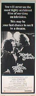 Original 1973 theatrical issue 14x36 style C poster. This is an original heavy stock rolled theatrical poster in excellant condition. Starring Marlon Brando and Maria Schneider.